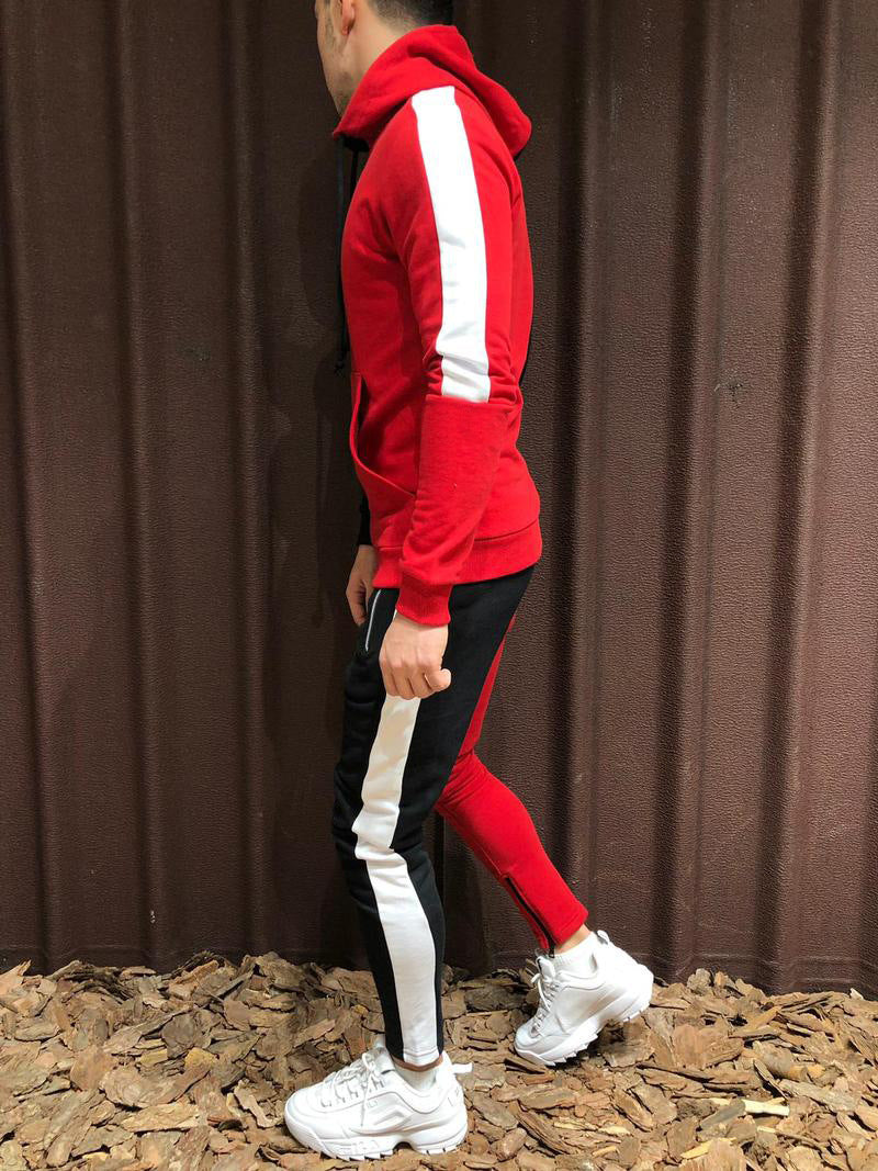 Contrast hooded jacket + pants two-piece suit