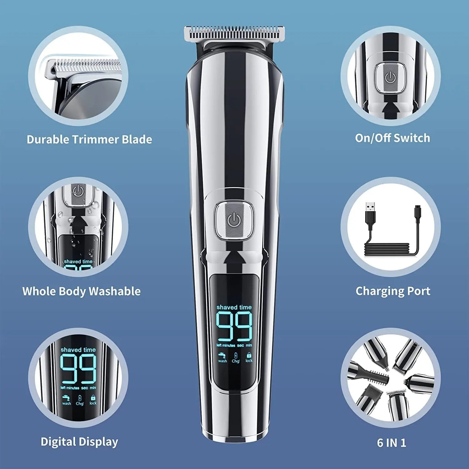Multifunctional Six-in-one Hair Clipper Rechargeable Shaver